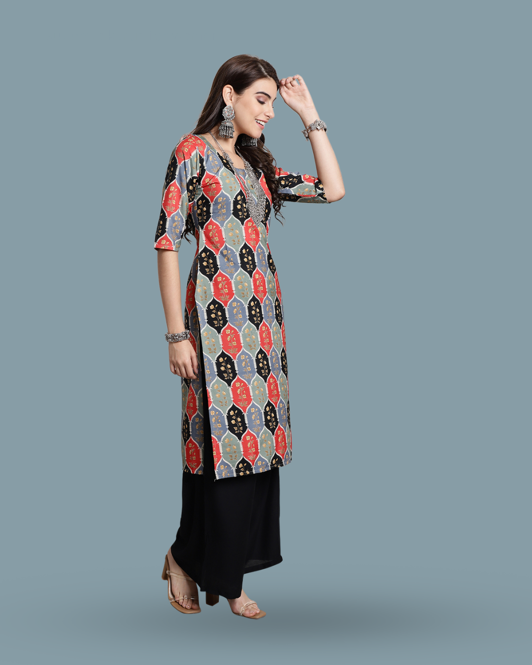 Red & Black Heritage Print Kurta