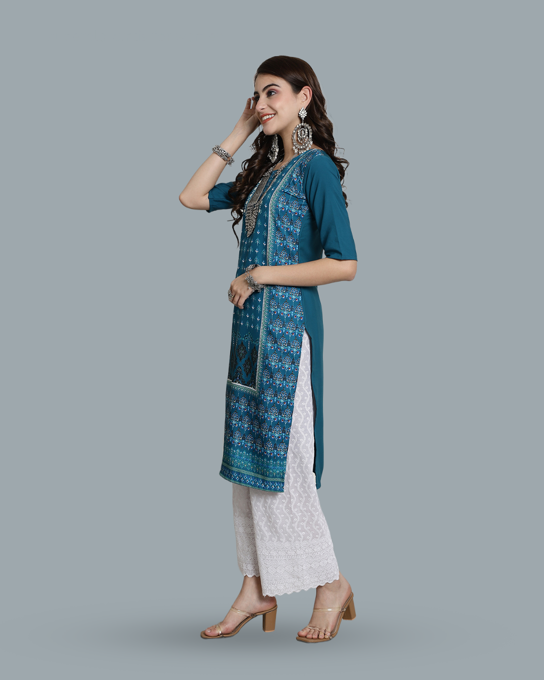 Teal Patterned Kurta