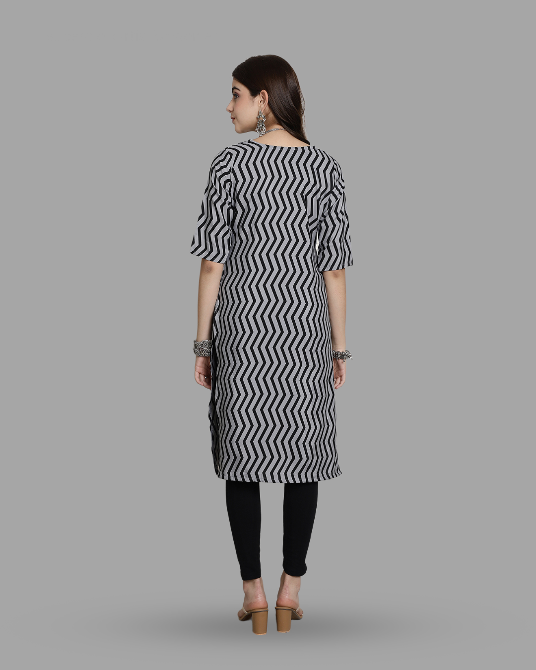 Zigzag Patterned Black Kurta